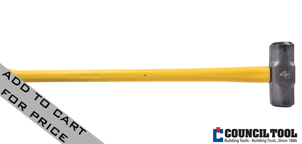 10# double face sledge hammer with fiberglass handle. Forged tool steel head, Made in USA, with clear lacquer finish to deter rust. Striking face is precision-machined with proper radius and chamfer (bevel), providing safer performance. Heat treated after machining for increased depth of hardness. (Turning after hardening looks more attractive (on competitor’s tools) but leaves less depth.)