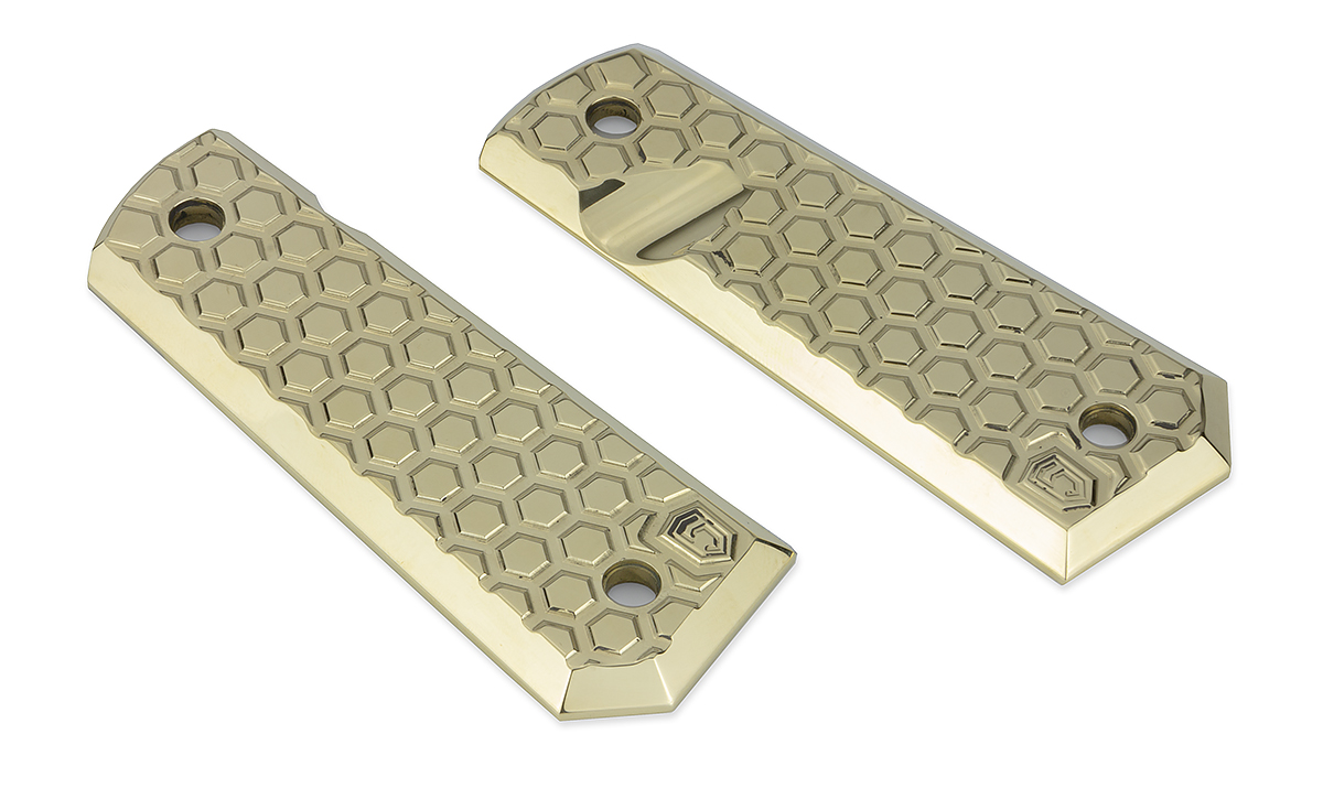 Hex Pattern Polished Brass 1911 Grips