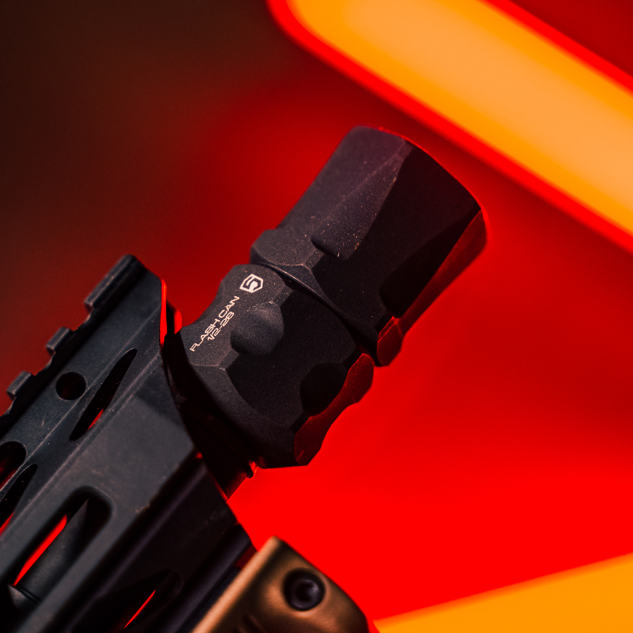 Phase 5 Weapon Systems Inc. is excited to announce the release of two new muzzle devices. The Phase 5 Flash Can is designed to direct gases, sound, and flash away from the shooter and adds a unique, stylish look to your rifle or pistol. Forcing the muzzle blast down-range will enhance your, and your range neighbor’s, experience when shooting a short barrel rifle or AR pistol and is very helpful when shooting at night or indoors. A Flash Can will not reduce felt recoil and will not reduce flash signature. The Phase 5 Hex design gives the Flash Can the perfect styling that custom gun builders are looking for.