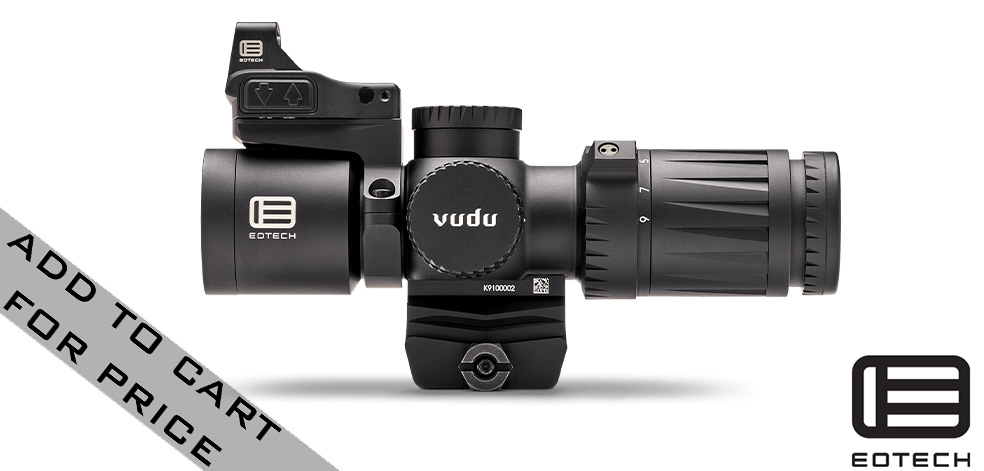 The super short Vudu 3-9x32 riflescope might just be the perfect optic. The housing is constructed of aircraft-grade aluminum to be compact, lightweight and incredibly durable. This second focal plane design comes in at 6.8" and is fog, water, and shock resistant. The turrets offer 1/4 MOA adjustments and are both capped for protection. A rotary dial provides an illuminated reticle with 10 brightness settings and the CR2032 battery provides roughly 300 hours of operation. The unique design provides an integrated base that is also compatible with any aftermarket mini-ACOG mounts.