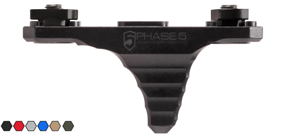 The Phase 5 Mini Hand Stop – MLOK (MHS-MLOK) is an ultra-lightweight rail attachment that will assist the operator with indexing their support hand while deploying the weapon; as well as keeping the support hand in the same position while firing. The MHS-MLOK can be mounted on the bottom or either side of any M-LOK compatible rail system in a forward or reverse direction, allowing either a push or pull style grip.