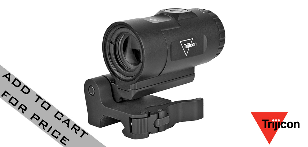 The Trijicon Miniature Rifle Optic (MRO) HD Magnifier is a 3 power reflex optic magnifier specifically designed to magnify the target and target seen through the MRO HD red dot optic. By magnifying the target the shooter is able to use the crisp dot in the MRO HD to quickly and accurately engage targets at extended distances. The MRO HD Magnifier is short and compact which saves weight and rail space. The design features easy-to-set flush, toolless adjusters that make centering the reticle in the field of view easy. The adjustable diopter allows the user to tune the optical performance to their eyes. The 3x magnifier also includes a multi position, military-grade flip-to-side quick release levered mount which makes mounting and unmounting the optic from the host platform quick and easy. This mount is also designed to flip into place over the top of back up iron sights commonly used on modern sporting rifles. Each magnifier includes a riser plate and additional fasteners to allow the optic to align with either 1/3rd or Full Co-Witness MRO HD mounts.